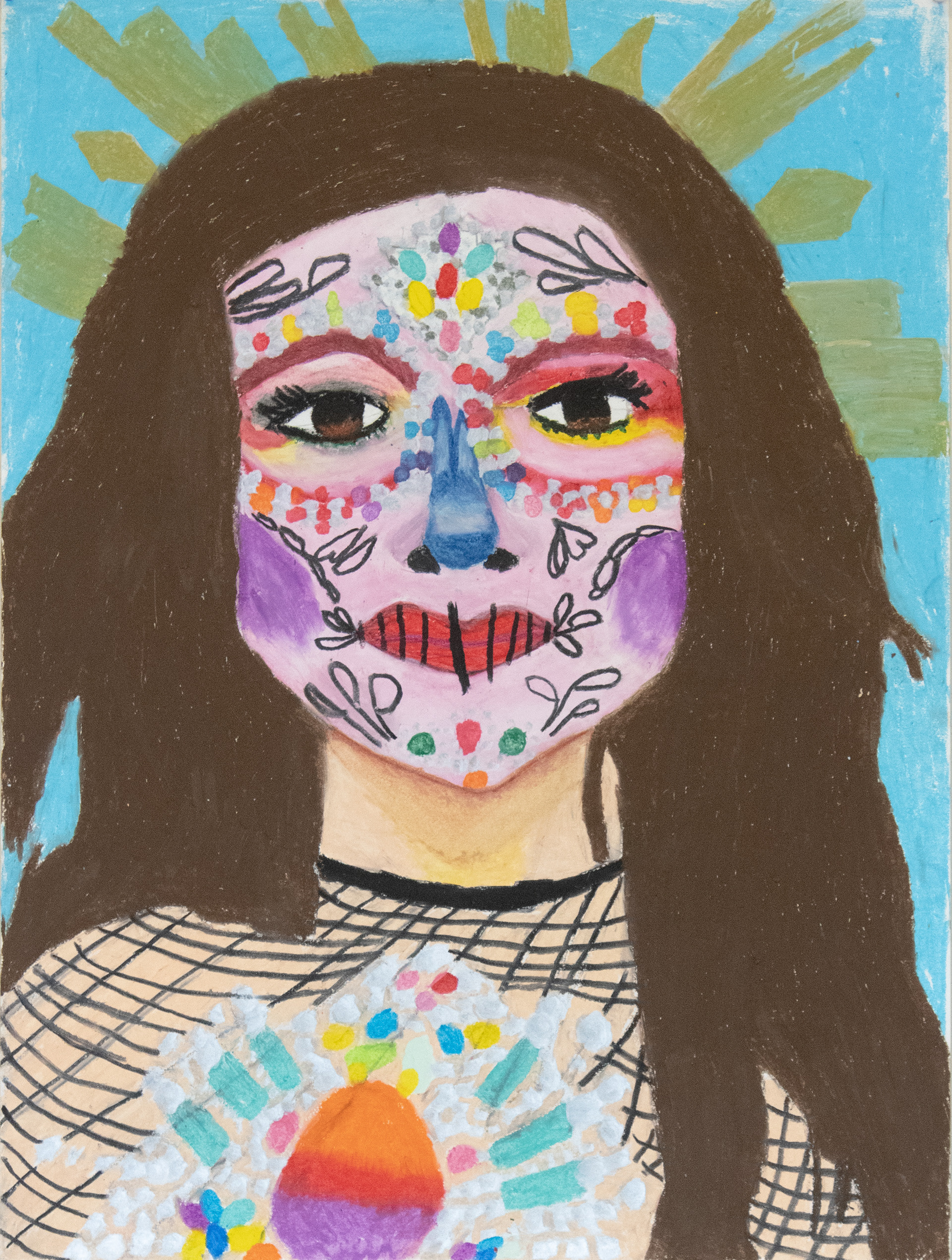 This a piece I made for an art show depicting a woman in a traditional Day of the Dead celebration make up.